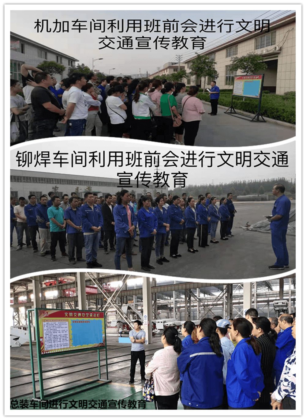 在全體員工中廣泛開展學習“文明交通宣傳教育月活動方案”。各單位利用各種會議、板報及微信群等形式,對員工貫徹學習《林州重機集團關于開展文明交通宣傳教育月活動方案》文件精神,使每位員工對活動要求做到人人皆知,特別是“六大文明交通行為”、“六大交通陋習”、“六大危險駕駛行為”,每位員工都應知悉知。