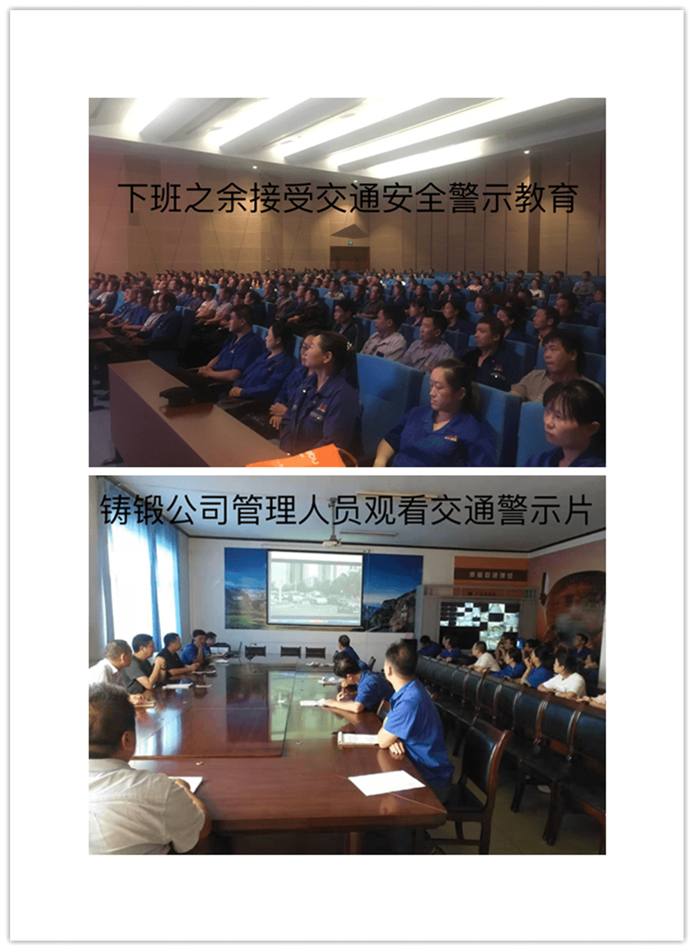 開展警示片宣傳教育活動。集團公司按單位分三次組織1000余名員工觀看交通事故警示教育片,集團公司子公司林鋼、鑄鍛也積極按照方案要求組織收看教育片,同時各單位還利用本部門的微信工作群進行轉發收看,達到警示教育全面覆蓋之目的。